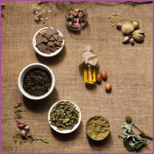 - Ghassoul : Le ghassoul est une argile naturelle qui nettoie en profondeur et élimine les impuretés. Elle laisse vos cheveux et votre cuir chevelu revigorés.